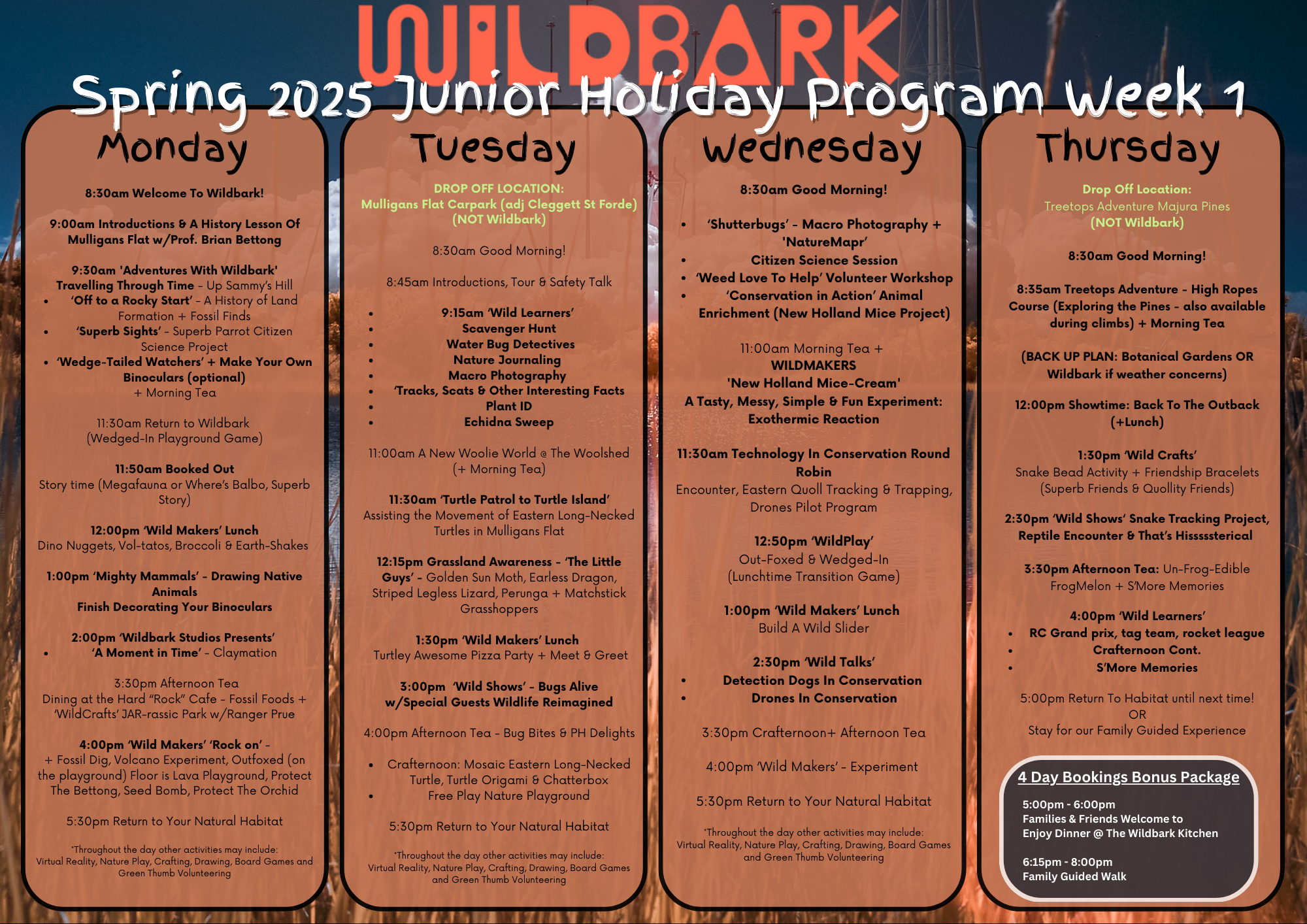 * Junior Ranger Program (Ages 5-11) (4 Day Program) DATES Tuesday 7th to Friday 10th October 2025